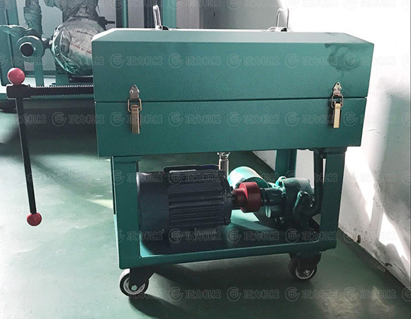 BASY板框?yàn)V油機(jī)是由齒輪輪泵,濾清器,安全閥,回油閥,濾床,后支架,底盤,拉桿,連軸器,以及電動機(jī)等部件組成。齒輪泵,連軸器以及電動機(jī)安裝在底盤上,濾請器安裝在齒輪泵的前側(cè)。在濾清器上裝有回油閥,濾床安裝在齒輪泵的上方,其中濾板框順序交替組成過濾室。濾紙夾在濾板和濾框的中間。進(jìn)出油口膠管連接在進(jìn)出管接頭上,當(dāng)油液從濾清器進(jìn)油口處被吸入,通過濾清器排除掉較大的顆粒雜志后,在進(jìn)入齒輪泵。齒輪泵在電機(jī)的帶動下旋轉(zhuǎn)產(chǎn)生擠壓力,使油液進(jìn)入濾床,滲透出濾紙將油液雜志濾凈。然后將油液從出油管排除出。當(dāng)油壓超過規(guī)定值時。安全閥就立刻啟動,使油液在油泵中自行循環(huán),油壓不再上升,以確保設(shè)備的安全,油樣閥供取油樣進(jìn)行耐壓及其他理化性能的實(shí)驗(yàn)。本機(jī)采用底盤滾輪結(jié)構(gòu)。可以通過人力拉動拉桿移動。